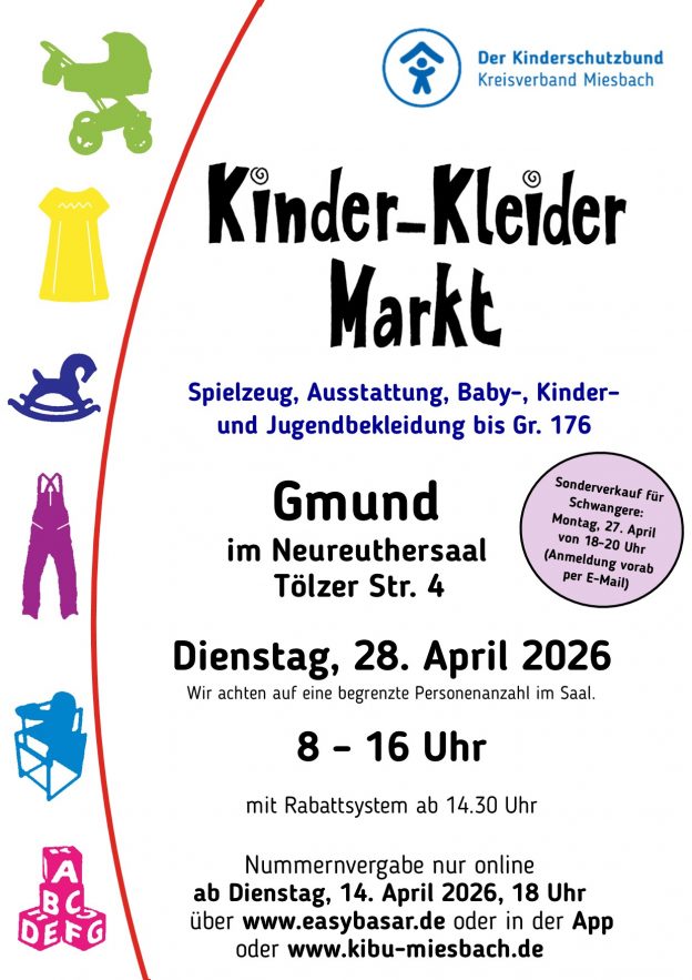 Kinder-Kleider-Markt in Gmund: Unseren nächsten Markt für gut Erhaltenes an Ausstattung, Spielzeug, Kinderwägen, Baby-, Kinder- und Jugendbekleidung bis Größe 176 für Frühjahr und Sommer veranstalten wir