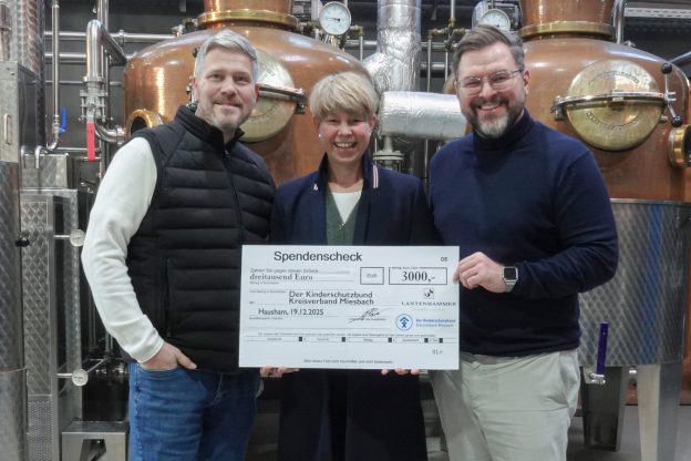 Bei der Übergabe des Spendenschecks an Janaa Schlick, Geschäftsführerin des Kinder-schutzbundes Kreisverband Miesbach e.V., unterstrichen die beiden LANTENHAMMER-Geschäftsführer Tobias Maier und Thomas Weinberger ihr soziales Engagement. Mit der Spende unterstützt LANTENHAMMER die wertvolle Arbeit des Kinderschutzbundes, der sich mit großem Einsatz für den Schutz, die Rechte sowie die Unterstützung von Kindern und Familien in der Region engagiert. „Das Wohl der Kinder und Familien liegt uns besonders am Herzen“, betont Tobias Maier. „Unser besonderer Dank gilt allen Besuchern und Sponsoren, die diese beeindruckende Spendensumme möglich gemacht haben.“ Die Tombola ist seit vielen Jahren ein fester Bestandteil des Winterlichen Hoffests und verbindet festliche Stimmung mit Regionalem Engagement. (Pressemitteilung LANTENHAMMER Destillerie GmbH)